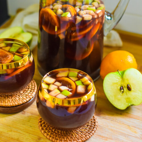 Fruits - I use tart Granny Smith apples and Navel oranges in this drink, per the classic recipe, but you can switch it up with other apple varieties and different kinds of citrus. You can also add fresh grapes, pomegranate arils--whatever you like!